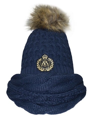 Ciepła i dobrze dopasowana czapka o wydłużonym kształcie. W komplecie komin wykonany bardzo ciekawym ściegiem.