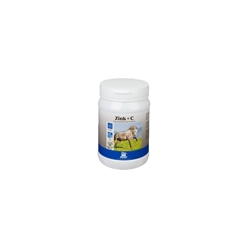 DERBY Zink + C – to suplement diety przeznaczony dla wszystkich koni u których można zrekompensować brak cynku w codziennej dawce pokarmowej. DERBY Zinc + C wykorzystuje połączenie organicznego związku cynku (chelatu) z witaminą C bardzo dobrze wchłanianą w ważnych procesach metabolicznych. Cynk jest składnikiem ponad 200 enzymów i jako kofaktor kontroluje ważne procesy metaboliczne w tym w układzie hormonalnym i odpornościowym. Witamina C jest zwykle wytwarzana i produkowana przez konie w ciągu całego roku, ale jej ukierunkowana suplementacja zapewnia wsparcie układu odpornościowego w każdej stresowej sytuacji. Cynk bierze istotny udział w tworzeniu się nowych komórek u młodych koni, ale także w ich odnowie u koni starszych. W widoczny sposób wpływa na metabolizm skóry, a także wygląd, wzrost i pielęgnację sierści konia.