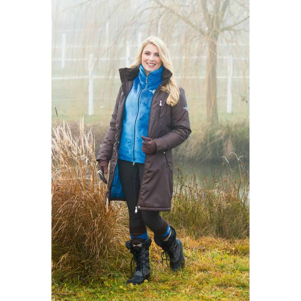 Płaszcz poradzi sobie ze wszelkimi kaprysami pogody. Z jednej strony Florena to pełnowartościowy płaszcz jeździecki z 2 drożnym suwakiem na przednim rozcięciu i rozcięciu do jazdy konnej, z drugiej zaś strony modny ,,Must Have” ze wszystkimi cechami nowoczesnego, sportowego wyglądu. Wyrafinowany 2- barwny efekt kolorystyczny nadaje płaszczowi szczególnego charakteru, który wyróżnia go spośród masy innych produktów. Obfite watowanie zapewnia optymalną ochronę przed zimnem, wyjątkowo stabilny materiał Oxford, oddychający i odporny na słup wody o wysokości 5000mm, zachwyci nawet podczas wilgotnej i zimnej pogody.