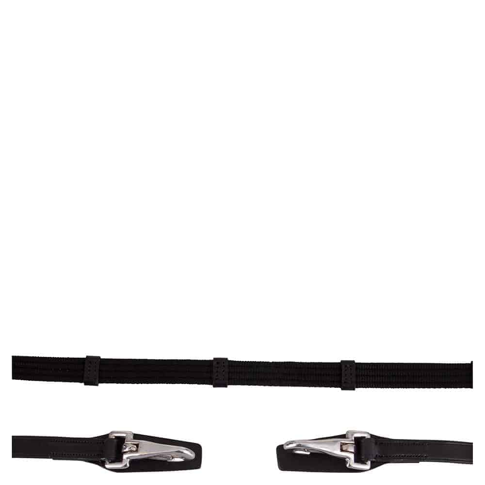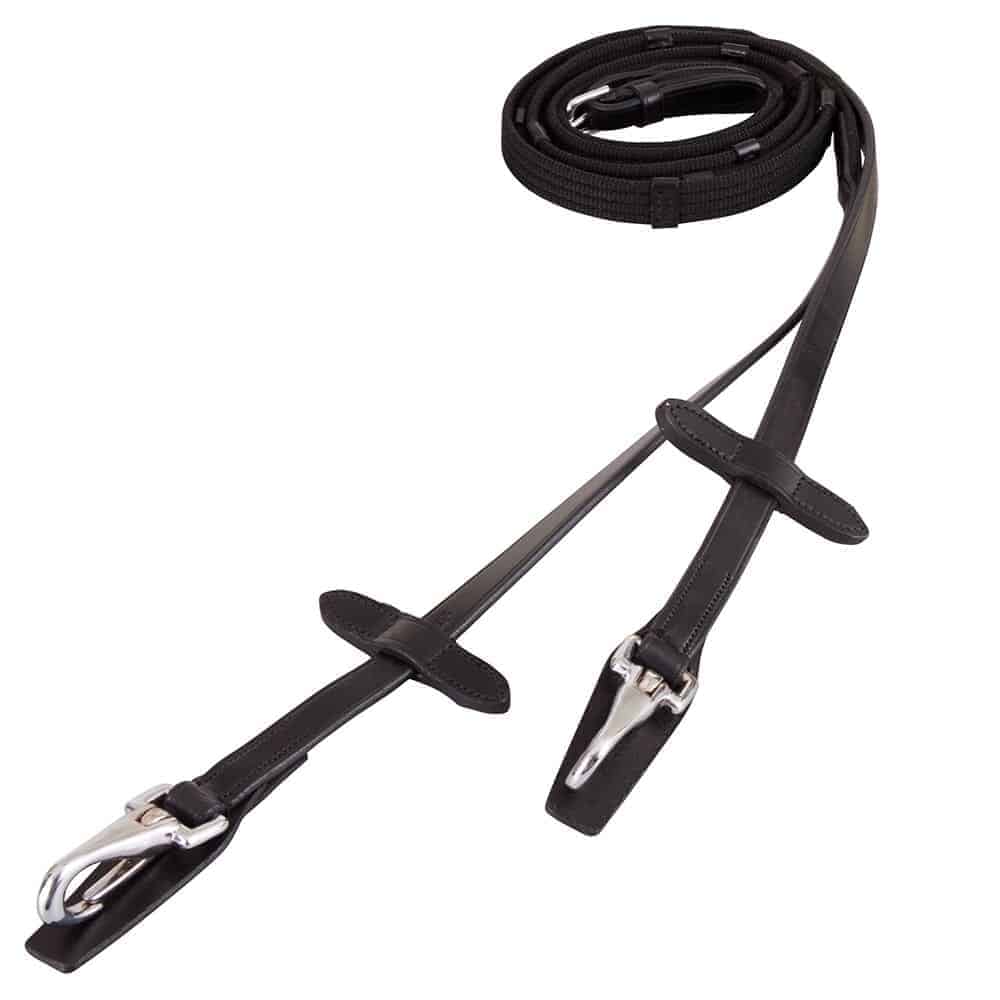 Wyposażone w motylki i stopery. Możliwość szybkiego wypięcia lub wymiany kiełzna. Karabińczyki osłonięte są skórzanymi podkładkami.